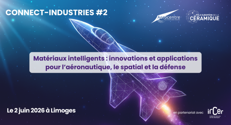 Le Pôle Européen de la Céramique et Aérocentre, en partenariat avec l’IrCer (Institut de Recherche sur les Céramiques), organisent la deuxième édition de Connect-Industries : Matériaux intelligents innovations et applications pour l’aéronautique, le spatial et la défense le 2 juin 2026, à Limoges, à l’IrCer.